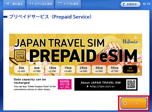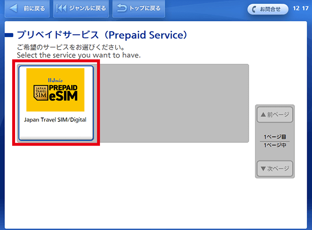 请选择「プリペイド型eSIM(Japan Travel SIM )」“预付费eSIM服务(Japan Travel SIM)”。